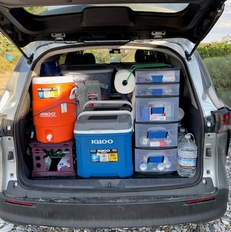 Runner’s Gear: How to Get Organized; What Must Be Kept Most Accessible (Must also allocate storage space for runner post-race items and crew baggage) Start with everything properly organized and clean--and keep it that way. Hang a trash bag in a convenient location Be sure the entire crew know the organization. Separate large coolers for “clean” and “dirty” (and backup supply) ice. 5-Gallon Drink cooler for easier filling of water bottles. Plastic stack of drawers for organization. Folding chair(s), workspace; see suggested gear list. Garden-type tool caddy to use when meeting runner.
