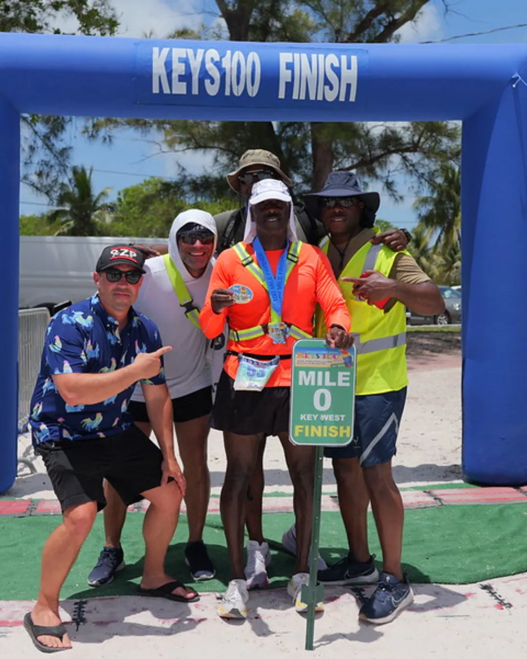 KEYS100® is a 100-mile point-to-point running race from Key Largo to Key West. Both teams and individuals compete. There is also a 50-mile option from Marathon to Key West for individuals and teams and a 50-kilometer individual race from Big Pine Key to Key West. All races finish at Higgs Beach on the Atlantic Ocean in Key West.